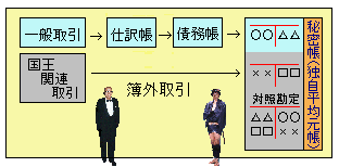 従って、取引を簿外(つまり仕訳帳と債務帳の外)に記録するか否かは、その取引が錫との関係で国王に係わ
